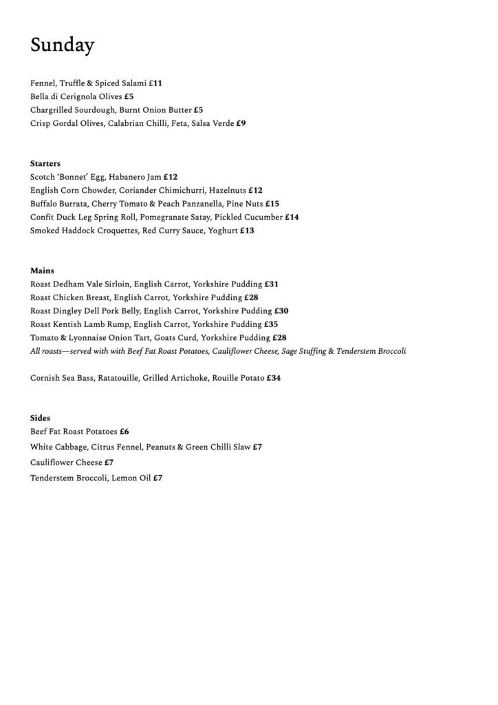 - Our December menu is the same all week (no Sunday Roast Menu)