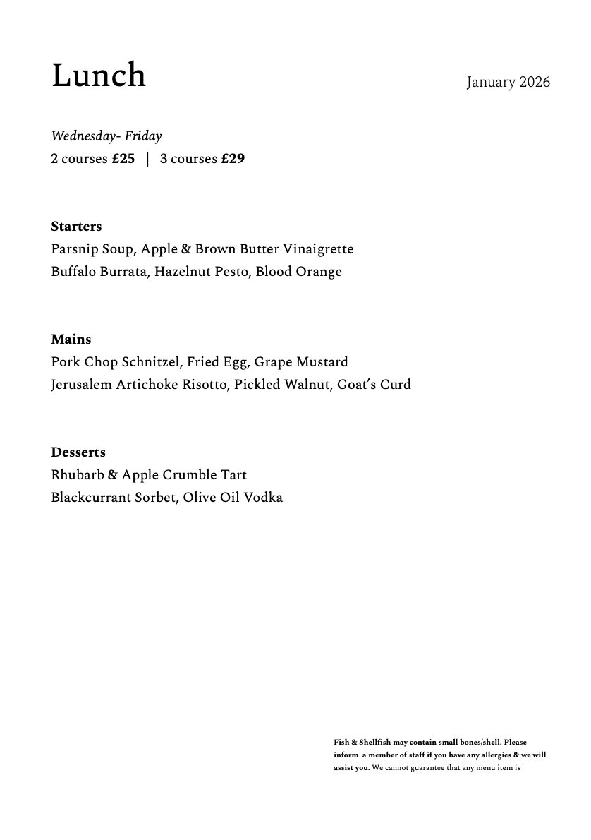 We are open tomorrow for lunch and drinks 12pm - 4.30pm